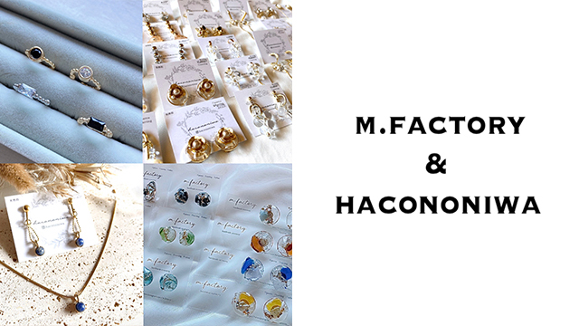 m.factoryとhacononiwaの2ブランドで出店させていただきます。シーグラスや天然石を使った、世界でたったひとつだけのアクセサリーや、大人可愛いオシャレなトレンドアクセサリーを制作しています。毎日の生活を彩るアクセサリーになればと思っています。